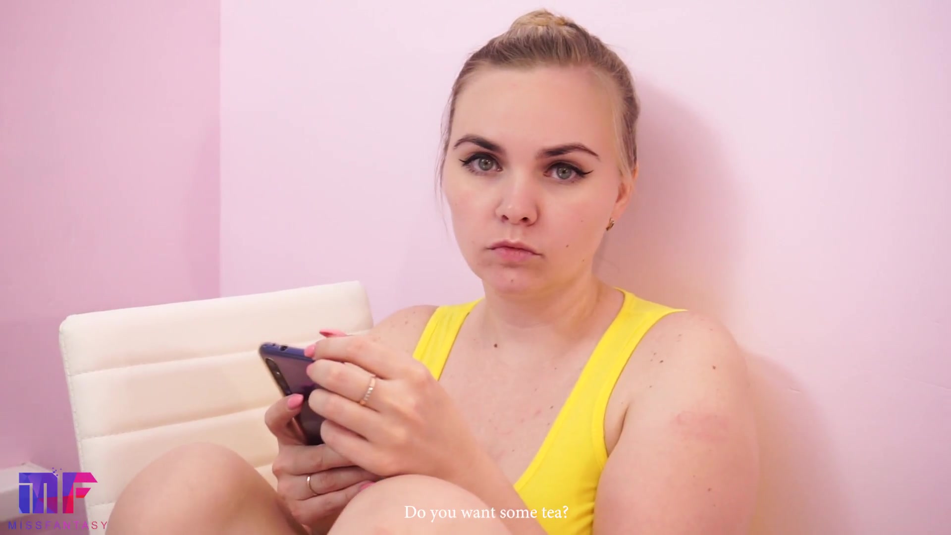 Русская девушка отвлеклась на кремпай во время уборки