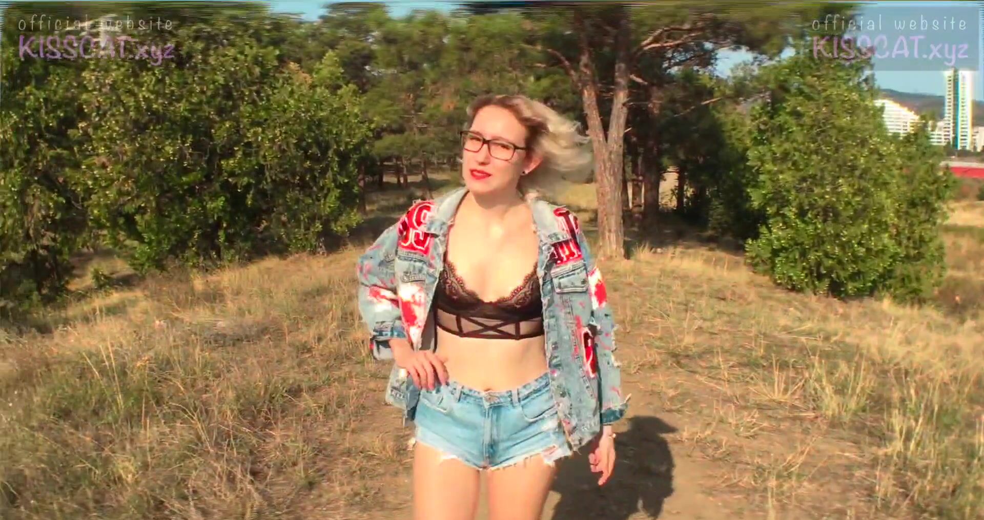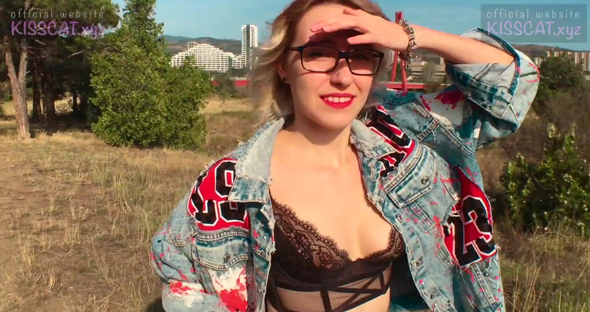 На улице было жарко и русская девушка сильно возбудилась!