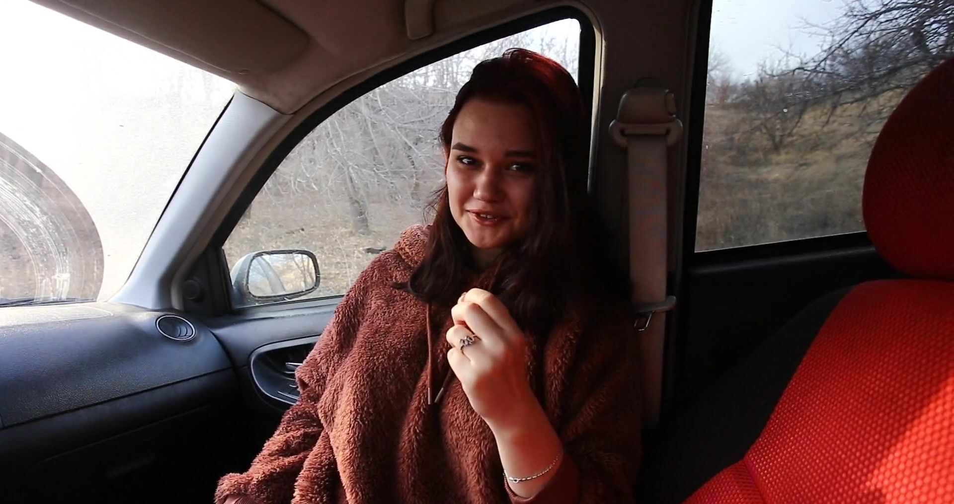 Отсос в машине с русской студенткой с пышными формами