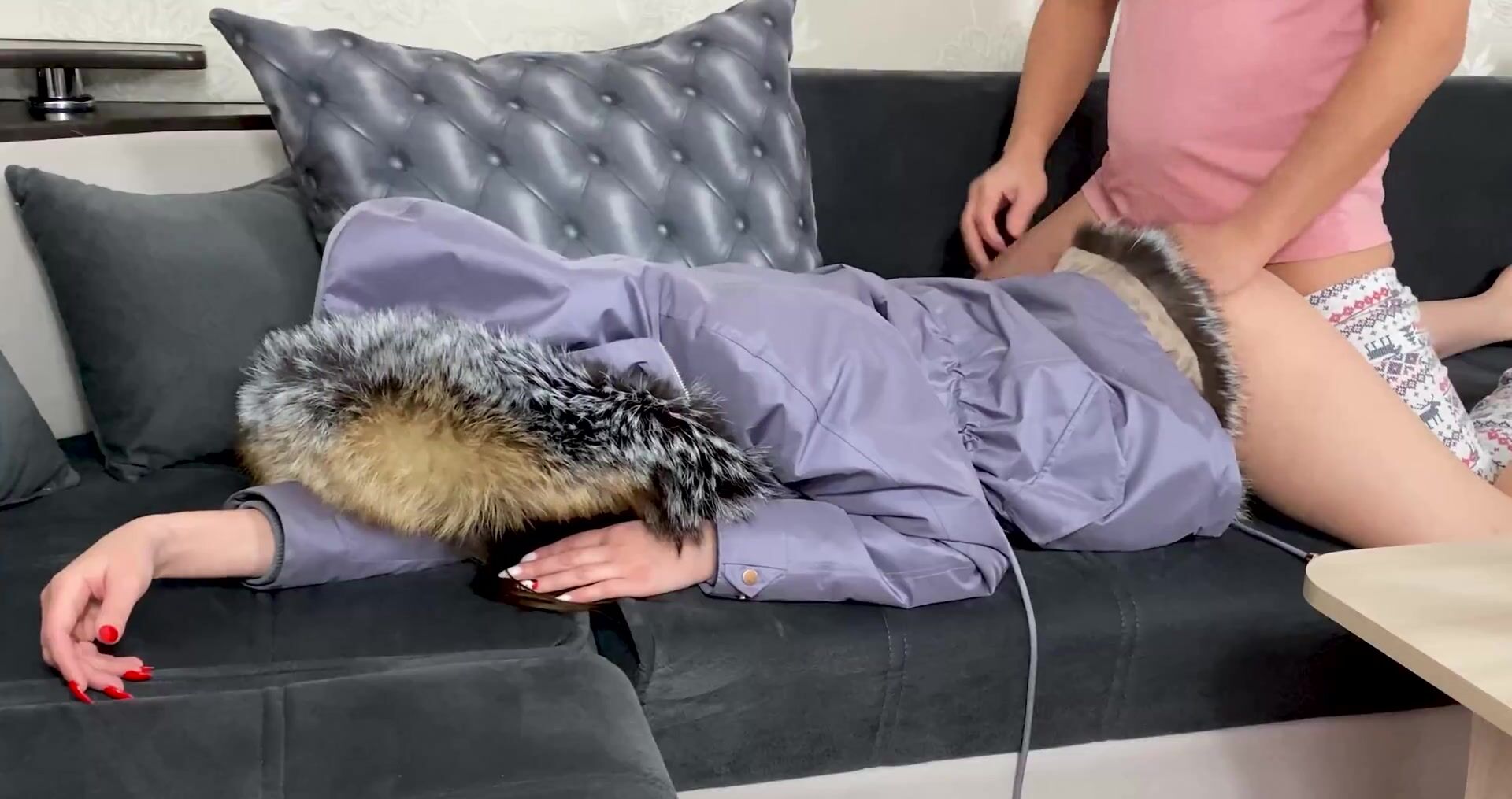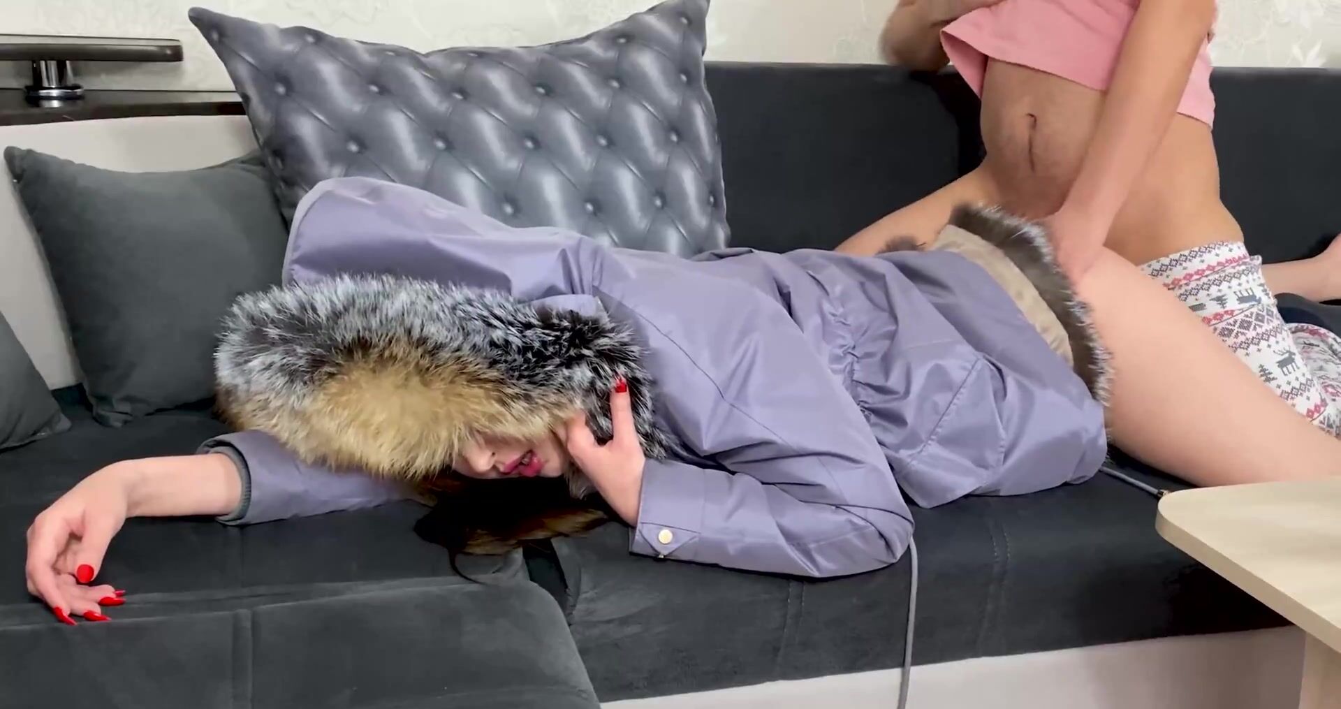 Пасынок трахает красивую мачеху в куртке!