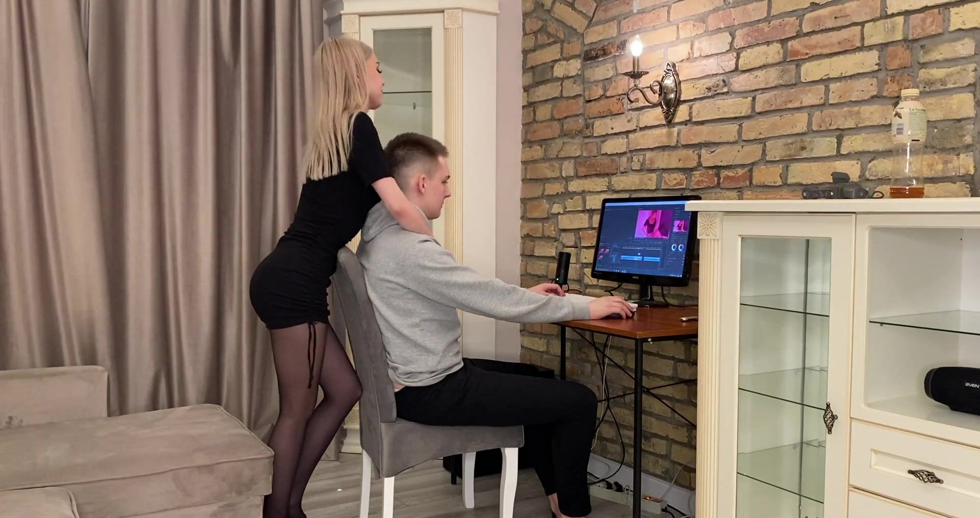 Секс с соседкой, пока она за компом