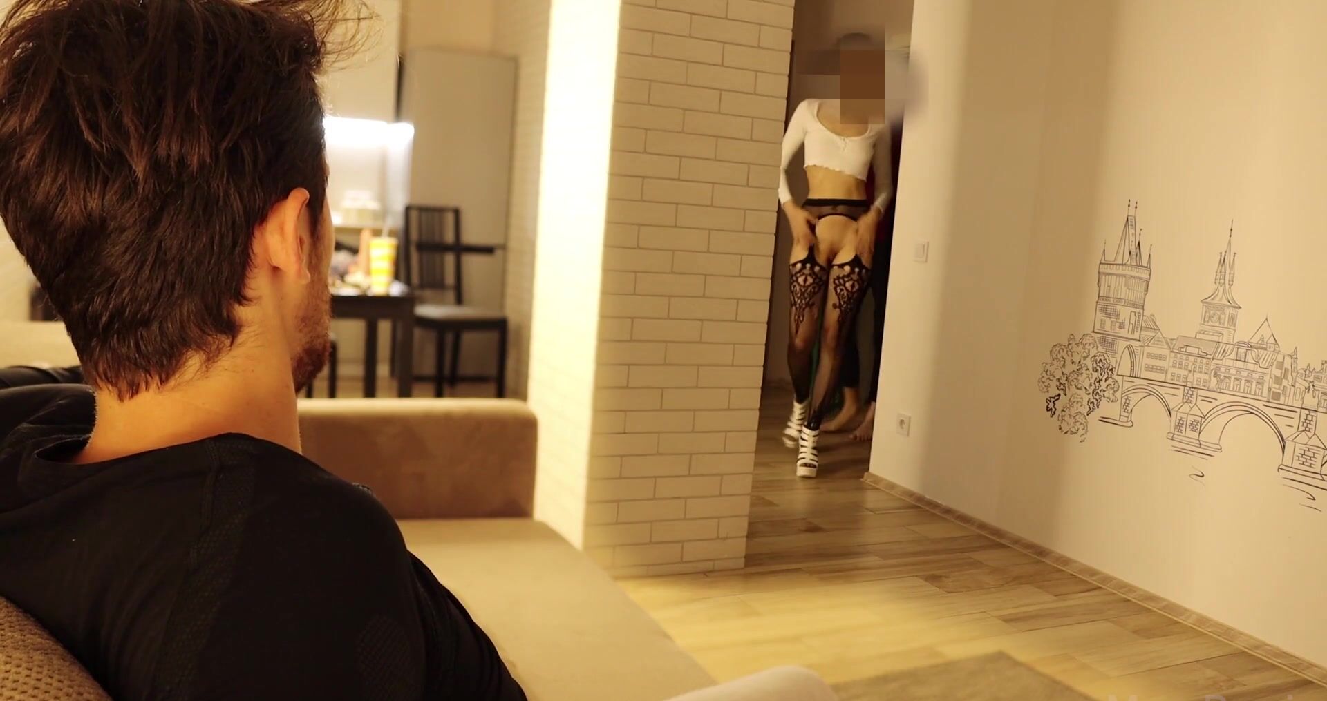 Подруга наряжает ёлку, а парень только думает о сексе!