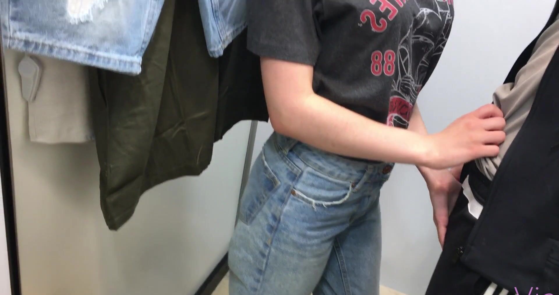 Молодая пара занялась быстрым сексом в примерочной