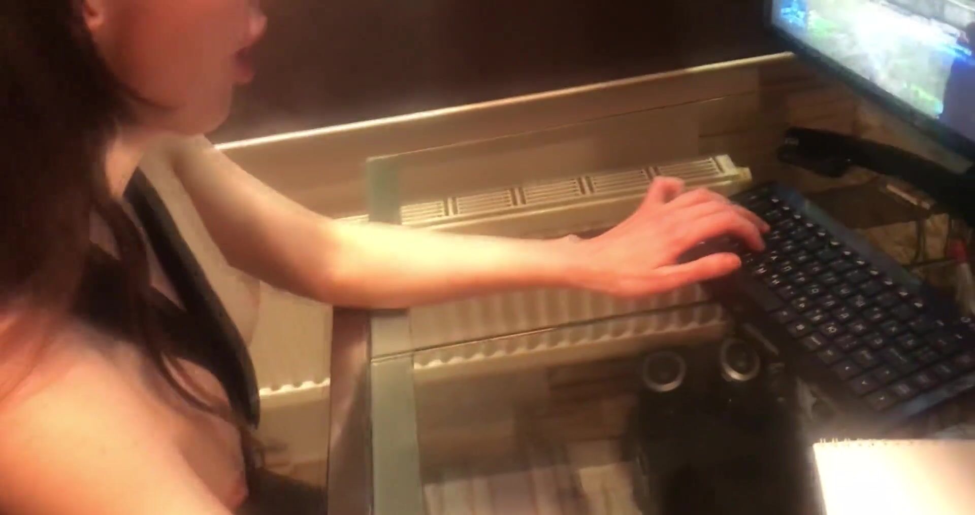 Секс с соседкой, пока она за компом