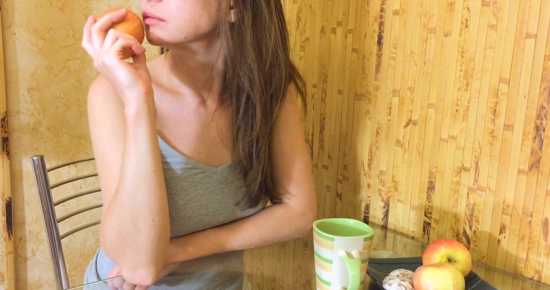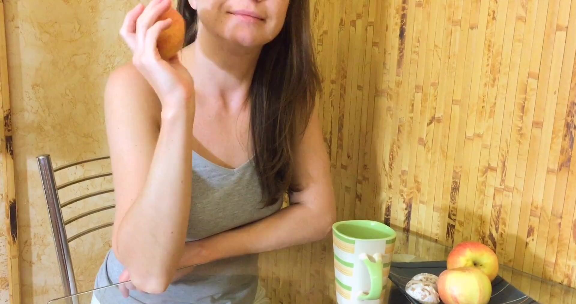 Русская сестра делает смачный минет на кухне!